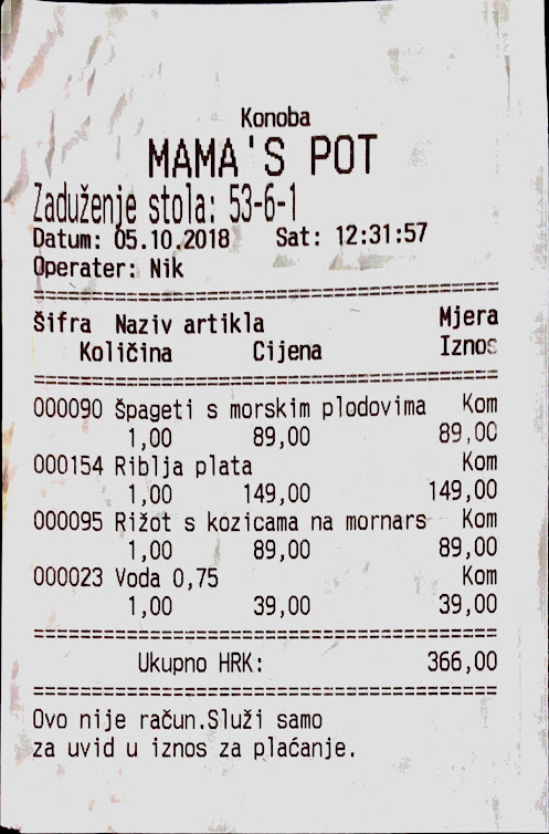 Total bill was 366kuna.